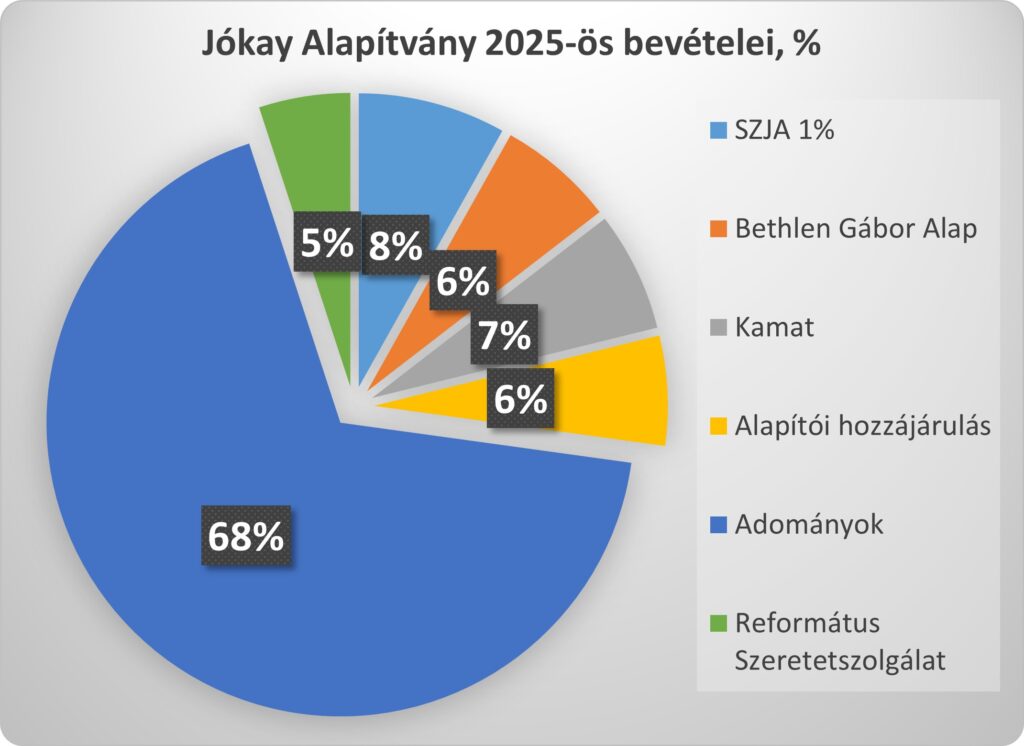 A Jókay Alapítvány a magyar nemzet lelki, szellemi és anyagi gyarapodásának előmozdítása és segítése érdekében munkálkodik. Ennek megfelelően feladatának tekinti a magyar kultúra ápolását és a rászorulók támogatását határainkon innen és túl